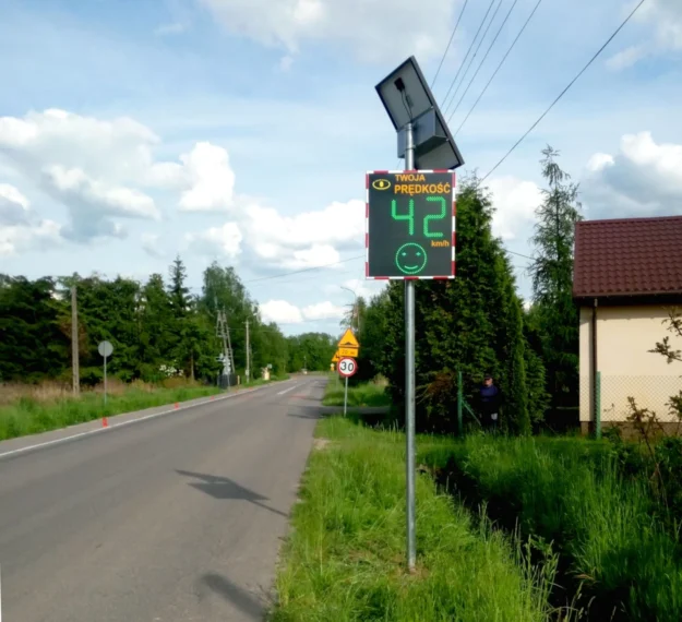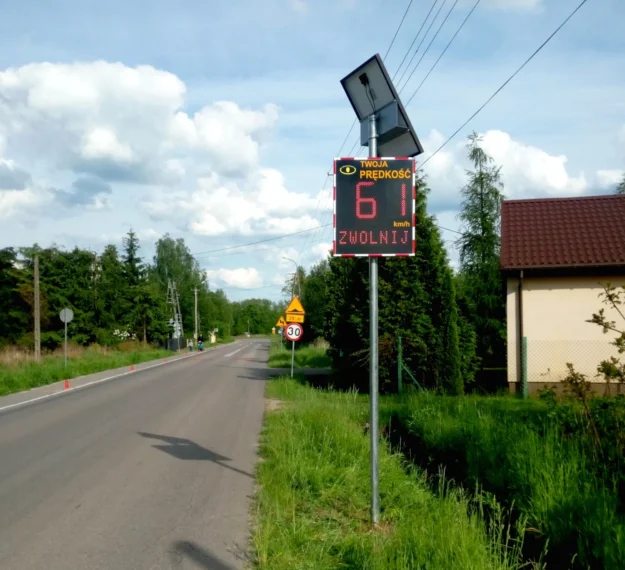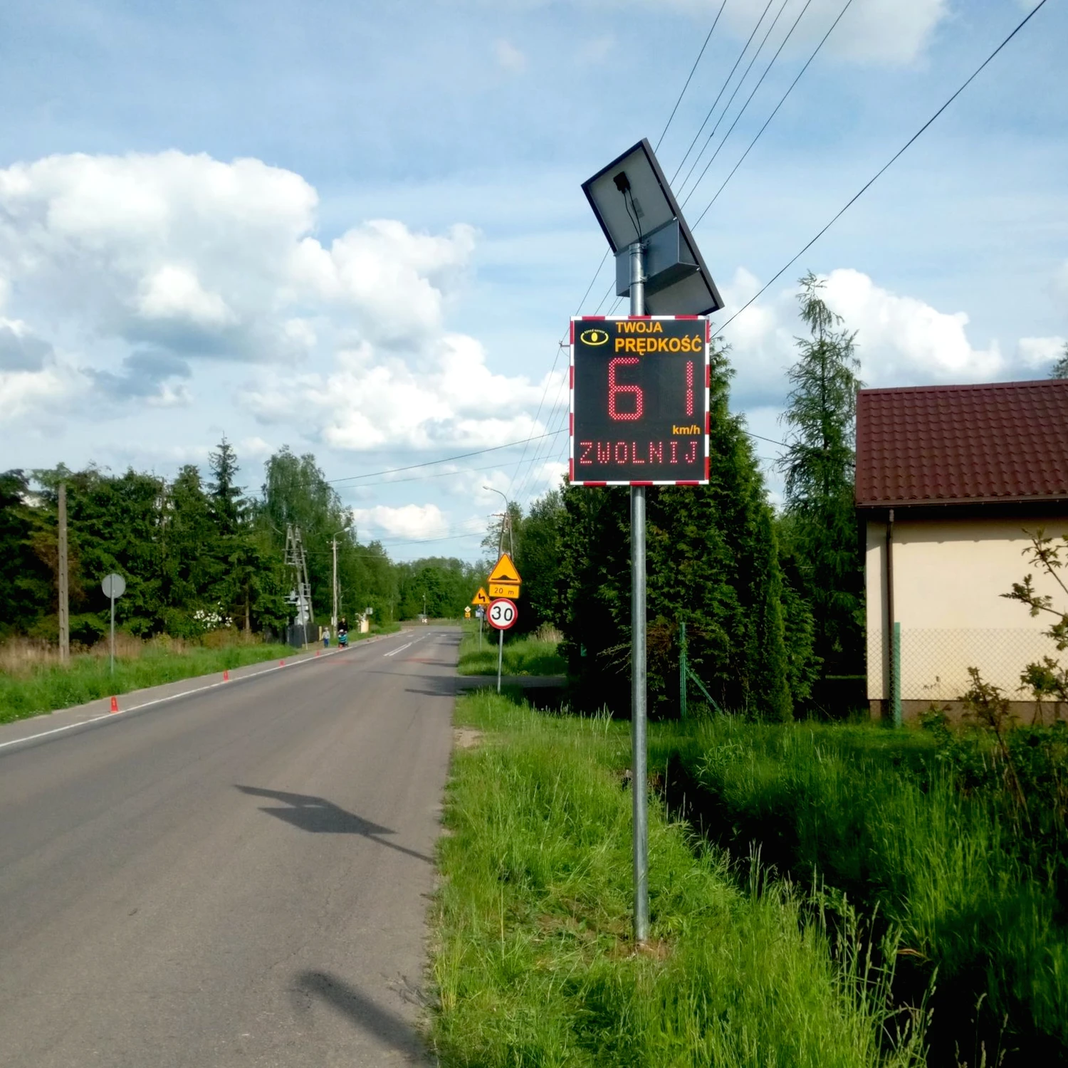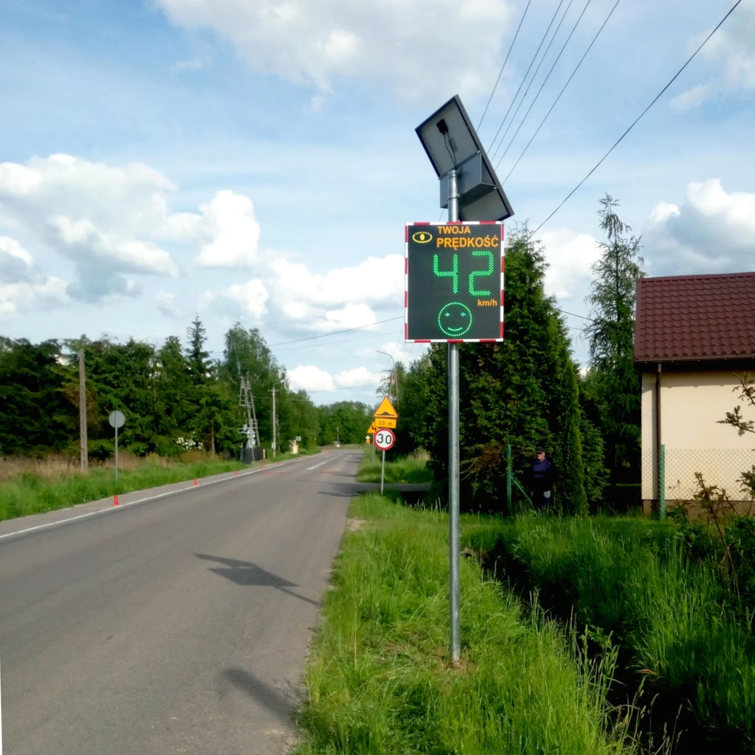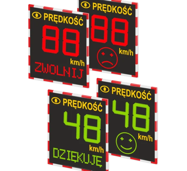 MP-DP1 to radar pomiaru prędkości rzeczywistej przeznaczony na drogi publiczne. Wyświetla prędkość pojazdów poruszających się po drodze. W zależności od tego czy prędkość została przekroczona pokazuje odpowiednie komunikaty.